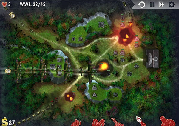 看着自己的防御阵地,在不断的向试图突破防线的敌人倾斜下猛烈的炮火,让人很有置身二战战场的感觉。不过游戏是属于游戏中没有配乐的类型,只有各种猛烈的炮火轰鸣声。这样子的设定还是要看玩家自己是否能够接受了,毕竟有些人会喜欢玩的时候来些音乐,有些则喜欢临场感十足的音效。