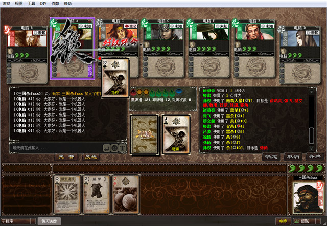 太阳神三国杀,是一款基于C++ QT GUI框架的三国杀非官方开源软件。在实现游卡三国杀游戏规则的基础上,还拥有自己独特的功能和元素:原创技能卡牌配音;原创扩展包倚天、欢乐;原创扩展模式双将、剧情、闯关等。拥有智能AI可以实现联机和单机的两种游戏方式,并能通过DIY接口进行自由的个性化修改和添加更多元素。