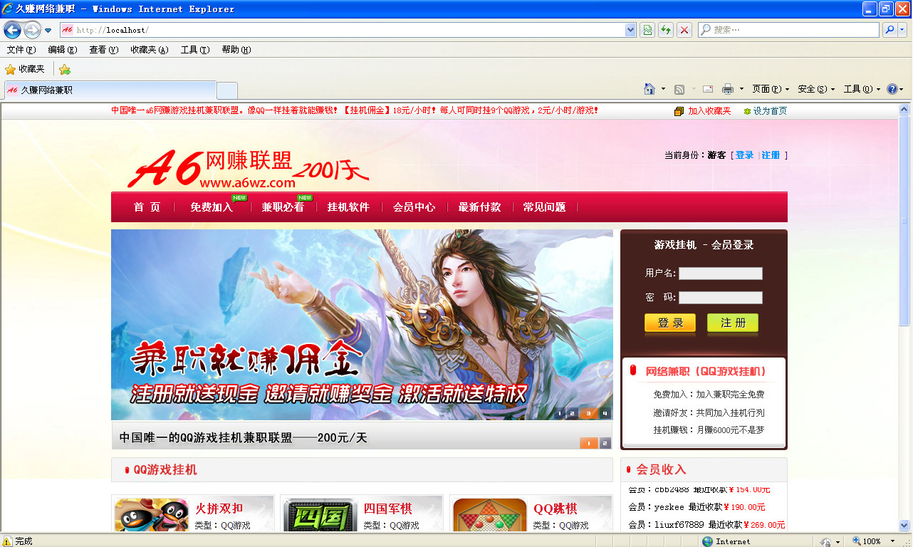 这款源码是A6网赚联盟网站的模板源码,让你在学习建站时能够得到更多参考,该网站设计美观,有很多值得学习和借鉴的地方。
