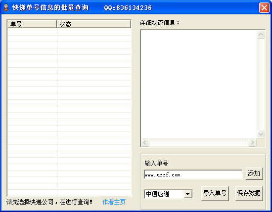 平常我们查询快递单号信息需要在网站上查询,这里小编分享一个快递单号信息批量查询器,可以快捷的批量查询快递单号信息,不过目前只支持中通速递和申通快递,界面非常简洁,操作也很简单。