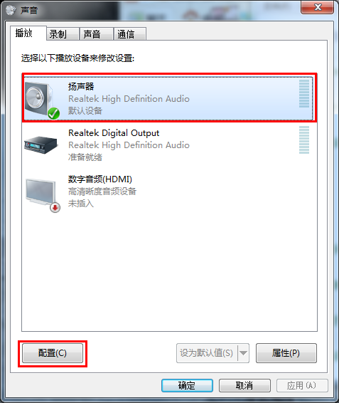首先,您的声卡必须支持至少4.1声道,Mu Player目前支持7.1声道。同时做以下设置 以 Windows 7 为例。