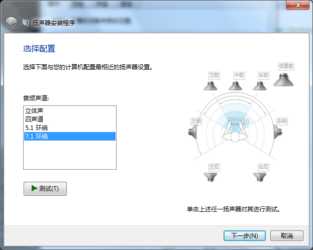 根据需要选择4声道5.1或7.1。之后点击 下一步 直至 完成