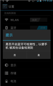 2、 在对方发起蓝牙搜索的时候要确保我们手机的拉亚是可被搜索的状态