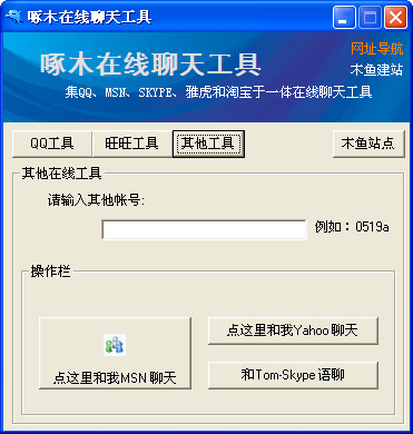 有的朋友每天打开电脑后,需要登陆的聊天软件一大堆,这样是否觉得很麻烦,在这小编给大家介绍一款集QQ、MSN、SKYPE、雅虎和淘宝于一体的在线聊天工具,让你可以轻松方便的与好友聊天,沟通更加方便。