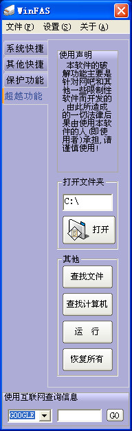 Windows快捷助手可以让你对系统程序和工具进行快捷的操作,提高使用效率,可以提取的系统工具达到一百四十多项,功能强大,界面类似于QQ,方便快捷。