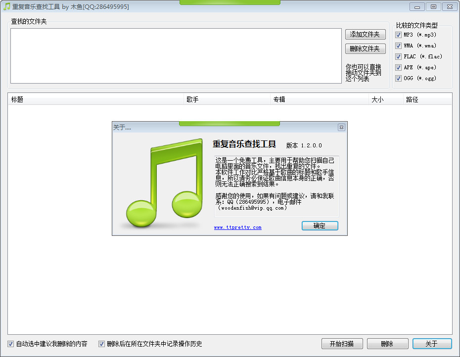 这是一个免费工具,主要用于帮助您扫描自己电脑里面的音乐文件,找出重复的文件。