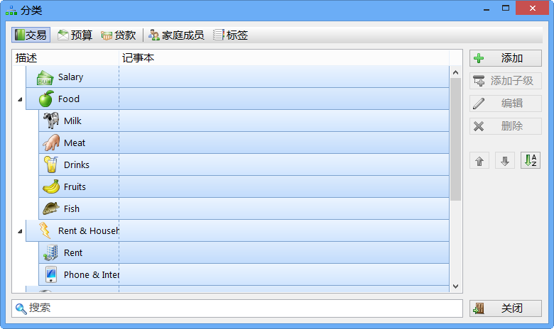 这些可以按照日期,账户,分类和总计进行排序。可以生成分解和重复事务。