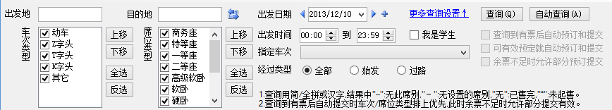 4、独创的指定车次、席别及筛选优先设置功能,支持学生票、儿童票等所有票种;