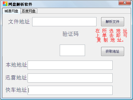 城通网盘解析地址可以获取本地地址、迅雷地址、快车地址,在所选地址上单击即可复制地址。