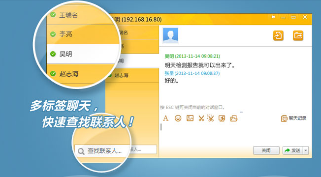 比飞秋更简洁的界面,更便捷的操作;比飞鸽更完善的功能,更强大的体验。
