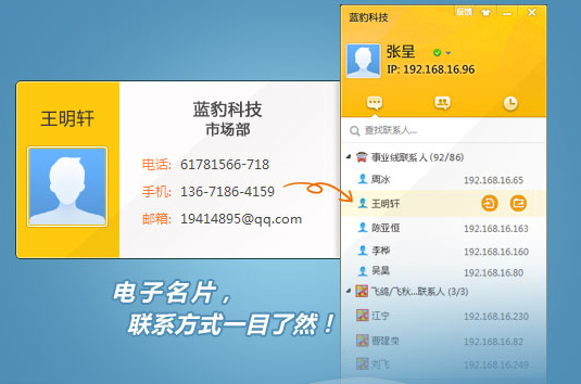 事业线是基于局域网的即时沟通软件,只要处于同一个局域网的用户,双方都安装了事业线,在双方都打开事业线的同时,双方自动出现在对方的事业线联系人中,无需另外通过账号添加,非常方便快捷。