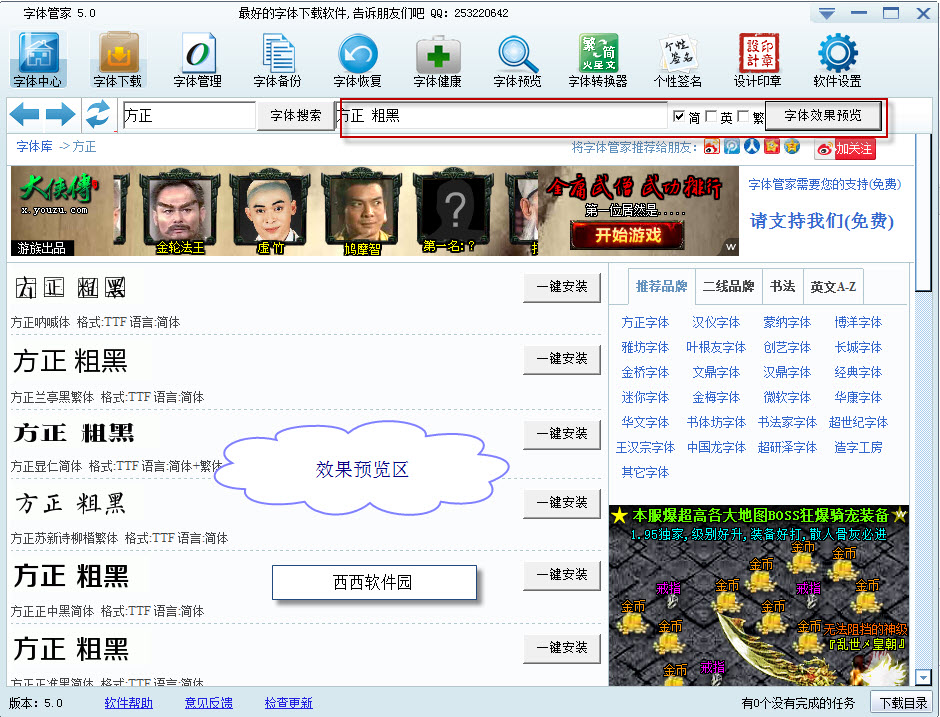 细心的朋友可能会问,右边的搜索框是干吗用的呢?它是搜索和预览字体的哦!