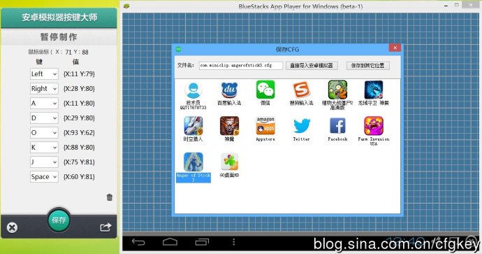 安卓模拟器按键大师,可以轻松制作安卓模拟器上所需要的重力脚本。及能自动检测已安装到模拟器里的游戏。可以直接导入到模拟器里,也可以生成到其它目录。