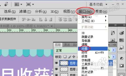 3、好了,我们再单击“窗口”菜单,选择“动画”命令: