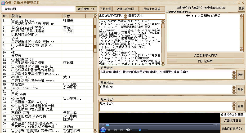 QQ空间里的音乐,需要绿钻才能免费播放,也可以通过外链歌曲播放,这里给大家介绍一款心情音乐外链搜索工具,可以帮助你搜索到大量的外链歌曲,搜到MP3格式的歌曲就直接能在QQ空间播放,也不用再去到处找了,非常方便。