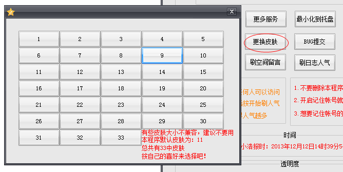 程序支持一键换肤,共有33套皮肤,你可以按照自己的喜好选择