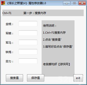此工具是游戏信长之野望14创造的资源修改工具,主要用于修改游戏金钱、军粮、军马、铁炮数值等游戏资源,下载后直接解压即可使用。