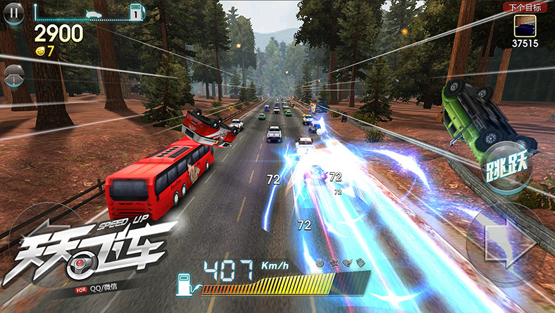 快要撞上前方车辆的一瞬间,按左或者按右切换道路并成功躲避,则算作一次惊险超车。当惊险超车成功时,不仅可以获得速度加成,还有额外的分数奖励哦!连续惊险超车次数越多,每次获得的分数越高。