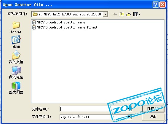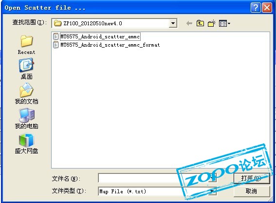 选择你下载好的刷机包,选择ZP100_20120510new4.0