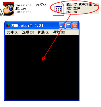 2、将魂斗罗3代无敌版.nes拖入到nnnesterJ 0.21窗口