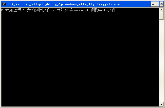 打开工具后,按0开始上传,按1开始列出文件,按2开始获取cookie,按3修改hosts文件