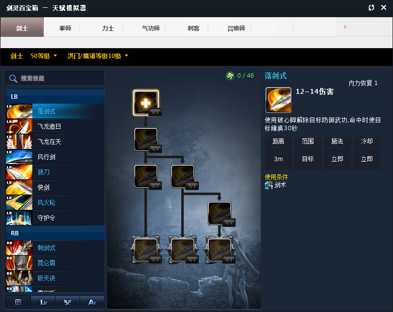 6、天赋模拟:提供剑灵全职业技能加点天赋树