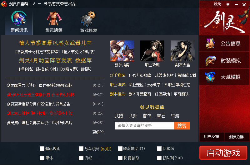 这是一个专门针对剑灵这个游戏而创作的一个辅助工具,功能非常强大,是目前最绿色安全的集多种功能为一体的软件,不仅让用户体验原汁原味的游戏,摆脱和谐困扰,还提供了更加便捷的一键操作,帮助剑灵玩家解决重复操作带来的烦恼,更有天赋模拟、时装模拟,新闻资讯等多种功能。