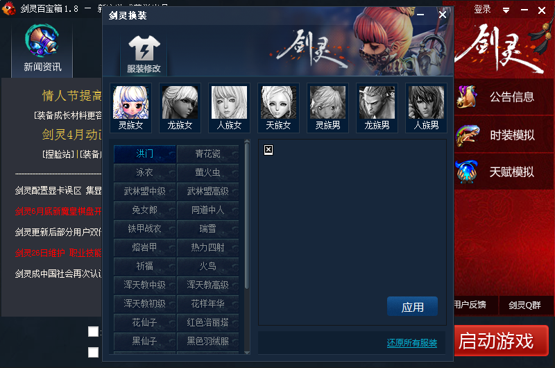 2、如果你是喜欢剑灵的服装的话,就可以直接的进人到软件的界面里面去设置自己喜欢的服装;