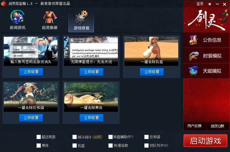 2、剑灵反和谐,启动反和谐后,需重新进入游戏才可生效