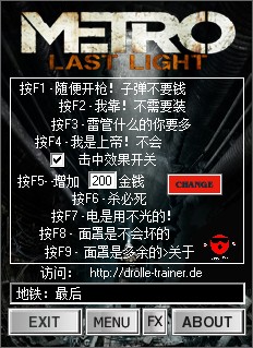 此工具是游戏地铁:最后的曙光的修改工具,对应游戏版本v1.0014,提供了九项实用属性修改功能,下载后直接解压即可使用。