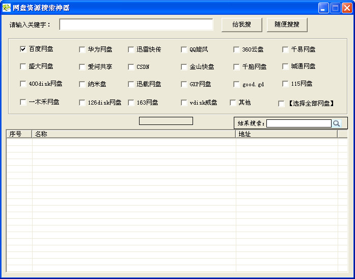 打开工具,输入关键字,选择网盘,点击“给我搜”开始搜索资源。随便搜索功能非常邪恶,宅男们的福利,你懂的!