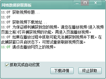 1、为保证顺利捕获到您的视频,请您在播放视频(进入视频页面之前)打开捕获视频的功能,再进入页面播放视频。