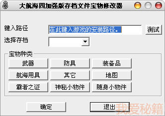 此款工具是游戏大航海时代4加强版的修改工具,主要用于存档文件宝物的修改,下载后直接解压即可使用。