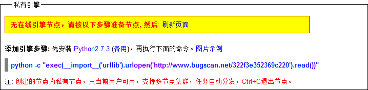 4、添加新任务时会自动检查有没有在线引擎节点,如果没有的话请按照提示添加引擎节点,添加完成后刷新页面即可