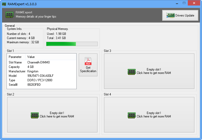 当你购买并添加新的内存时,RAMExpert就会自动检测出相关信息。