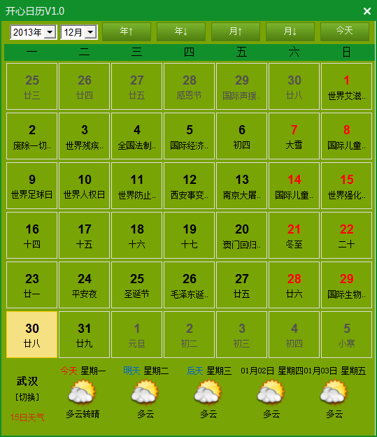 开心日历是一款非常实用的绿色日历软件,提供日历查询、新历农历,最近七天的天气预报等实用功能。