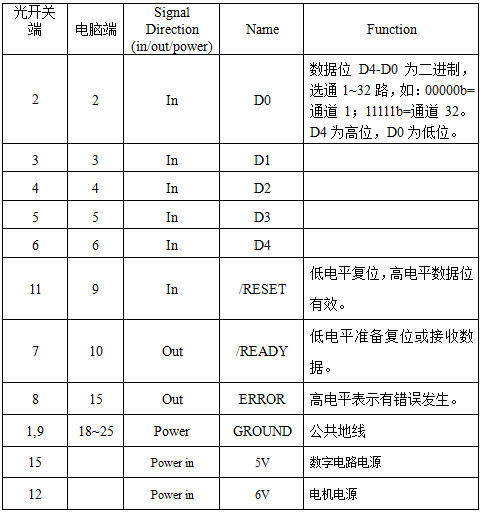 光开关并口控制软件不用安装,只要把目录里全部文件拷贝到硬盘里即可,本软件可运行在WIN98/ME/2000/XP。将并口线连接好,一头25针连接电脑,一头15针连接光开关,并把光开关电源接好,电源要求:光开关模块需要5V DC电源,要求5V电源要能提供1A电流。先将并口线连接好后在打开电源。