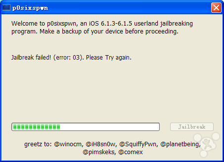 µÚÒ»´Î´ò¿ªp0sixspwn-v1.0.4-winûÓÐÔ½Óü³É¹¦£¬ÌáʾµÄ¶«Î÷ÍüÁ˽ØÍ¼£¬ºóÀ´¿´µ½ÁËÀï±ßÓÐ˵Ã÷£¬¾ÍÊÇÕâ¸ö¶«Î÷Àï±ßд×Å£¬Extract p0sixspwn to your Desktop or C:\ drive prior to running. Do not run it directly from the zip!£¬¾@felixet ¸üÕý£¡ÎÒ·ÒëÁËÒ»ÏÂÊÇÕâÑùµÄ£ºÔÚÔËÐÐ֮ǰ£¬Çë½âѹp0sixspwnµ½ÄúµÄ×ÀÃæ»òC£º\ÅÌÖС£²»ÒªÖ±½Ó´ÓѹËõ°üÖÐÔËÐÐËü£¡´ó¸ÅÒâ˼¾ÍÊÇÕâ¸öÎļþ°ü½âѹËõµ½CÅÌ£¬Ë«»÷p0sixspwn-v1.0.4.exe¾ÍÐÐÁË£¬ÎÒ¾ÍÊÇÕâô×öÁË£¬´ó¼Ò¿ÉÒÔÊÔÊÔ¡£