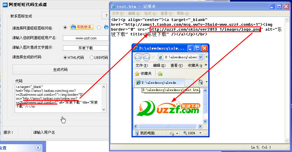 支持HTML代码和UBB代码生成。HTML代码,可用于博客,个人网站;UBB代码,可用于论坛等。支持两种风格的旺旺图标; 支持查询指定旺旺号是否在线。