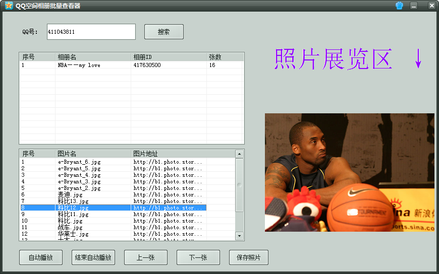 库索族QQ空间相册批量查看器可以用来查看任何QQ空间相册(前提是对方相册没设置密码),操作简单,功能强大,只需要简单的两步,即可查看任意开放的QQ空间相册并保存照片到本地。