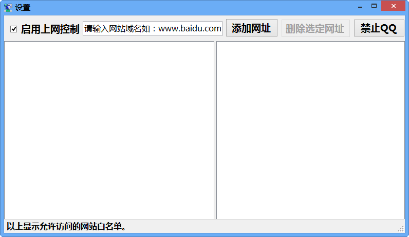 运行后,只需在设置界面添加允许访问的网站即可加入白名单。
