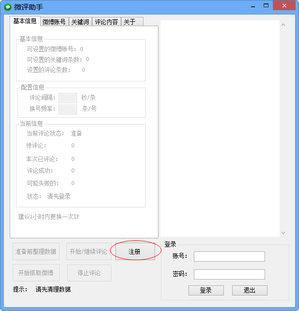 第一次使用时需要先注册一个账号,点击左下角的“注册”按钮注册一个账号,然后用这个账号登陆软件进行使用。