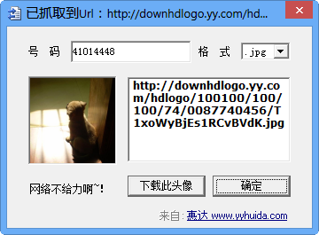 YY开通高清头像之后,很多美女都把自己的高清美图作为头像,然而要获取这些头像图片,只能够采用截图,并且截图的图片质量都不怎么高。惠达歪歪头像大盗是一款YY头像提取工具,只需要输入好友YY号就能在几秒中获取并且解析对方的头像地址,获取高清的头像,可以直接保存;免登录客户端!