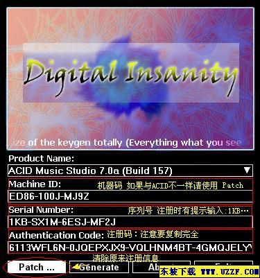 注:本不补丁只适用于 ACID Music Studio 7.0 版汉化,汉化后将不能恢复原来英文版,请谨慎使用。如果想还原原来版本,请重新安装。