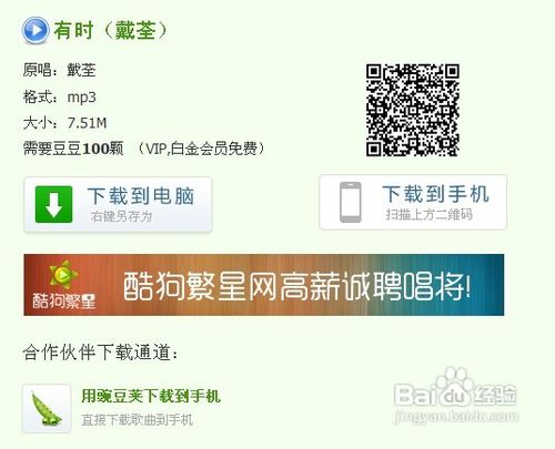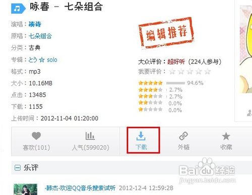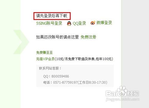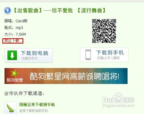 我们点击进入歌曲详细的介绍界面,找到下载选项,点击进入到下载界面,我们直接点击下载到电脑,什么,没反应,难道不能下载还是这个网站出了什么问题,其实都不是,原因就是你没有登陆,所以不能下载,提示在右边。不过小编是觉得这个很不人性化,起码不能下载的时候给个弹出框提示呀。