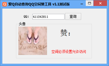 该软件主要有两个功能,查询QQ空间有多少个赞,以及查看对方的QQ头像,非常简单。