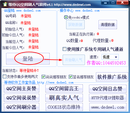 等待QQ空间刷人气软件是继QQ空间人气王之后再度破解腾讯对QQ空间刷人气访问量的限制,本次采用真实QQ号对指定的QQ空间进行真实访问,用户只需输入QQ号即可。软件24小时都自带大量的小号和代理,无需烦琐的操作简单易用,2014最新版QQ空间刷人气工具独家首发。