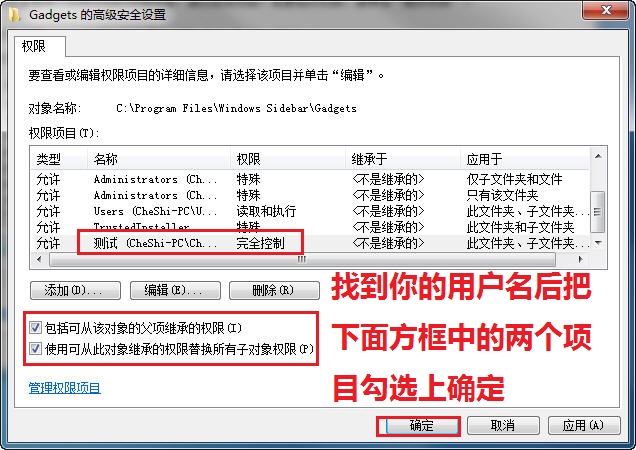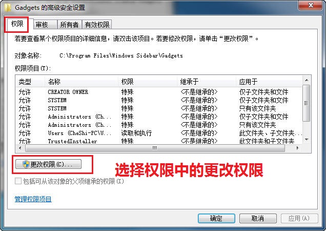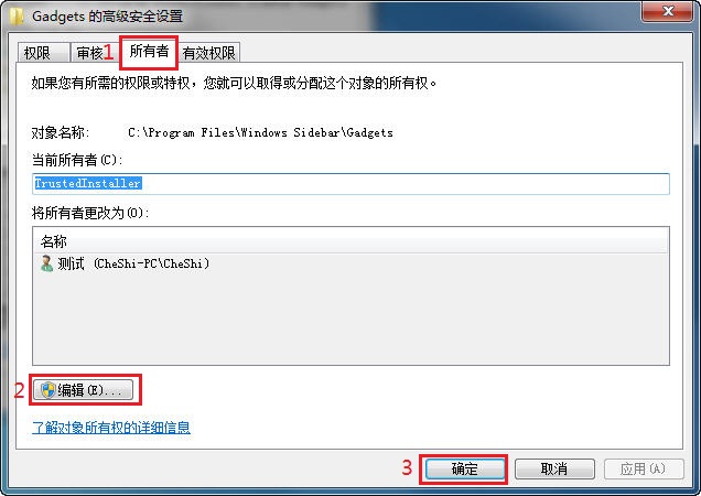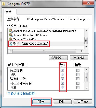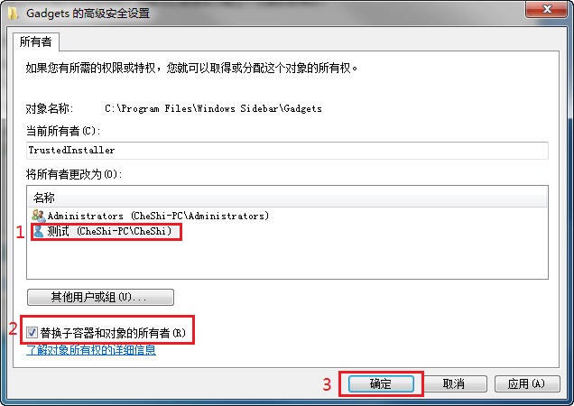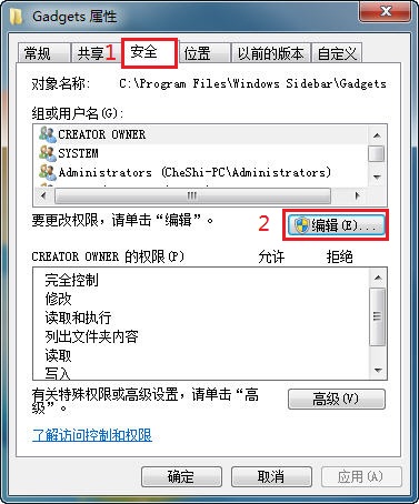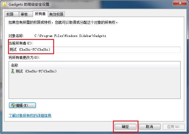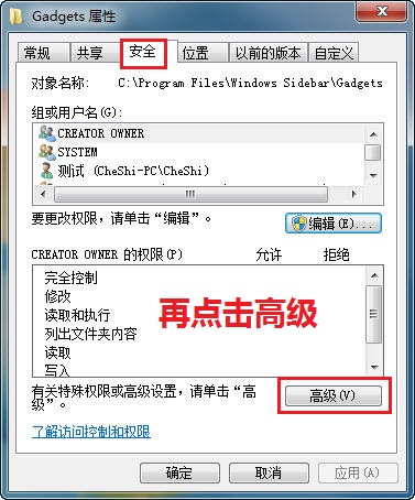 下面就以系统边栏文件夹 C\Program Files\Windows Sidebar\Gadgets设置如何具体取得当前用户管理员权限为例