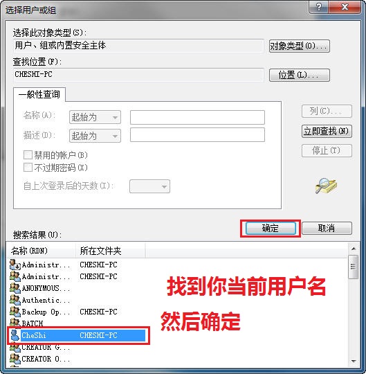 例如:以我自己当前用(帐)户的名字是“CheShi”(装系统时自己设置的登录系统的用户名称)为例,为使用方便进入系统后我把这个当前用户登录名称改为“测试”,但实际还是对应当前帐户的名称“CheShi",学习本教程时因为每个人设置的当前管理员用户名字不一样,实际应用时请用你自己登录的名字。