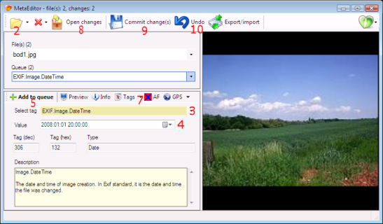 程序支持JPEG和TIFF文件格式和元数据的EXIF(规格:2.2),IPTC,GPS和XMP。进出口为CSV或XML文件。批量处理多个文件,包括命令行实用mecmd。与谷歌地球谷歌地图。JPEG无损编辑,没有重新压缩的同时节约。